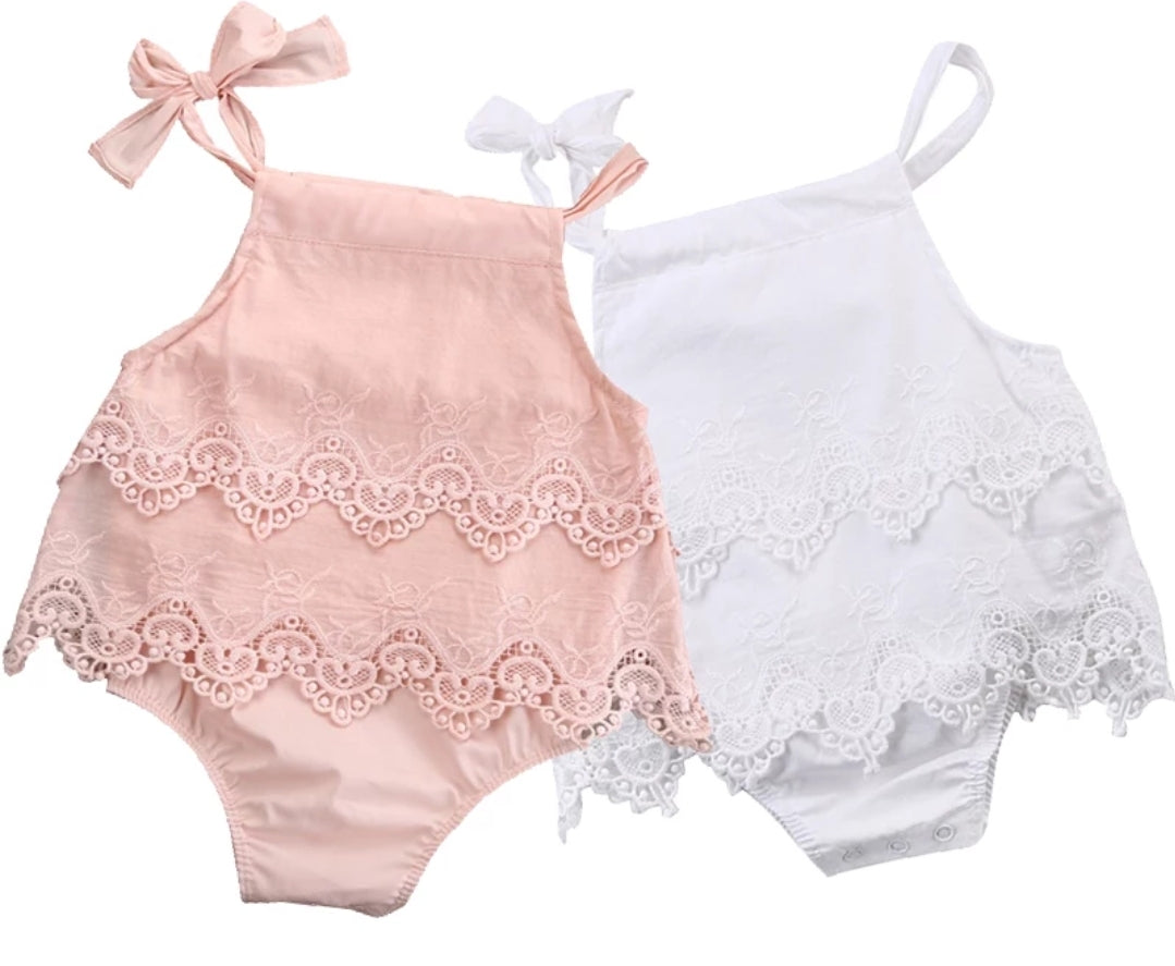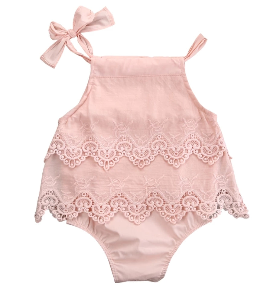 Peach Lace Boho Romper