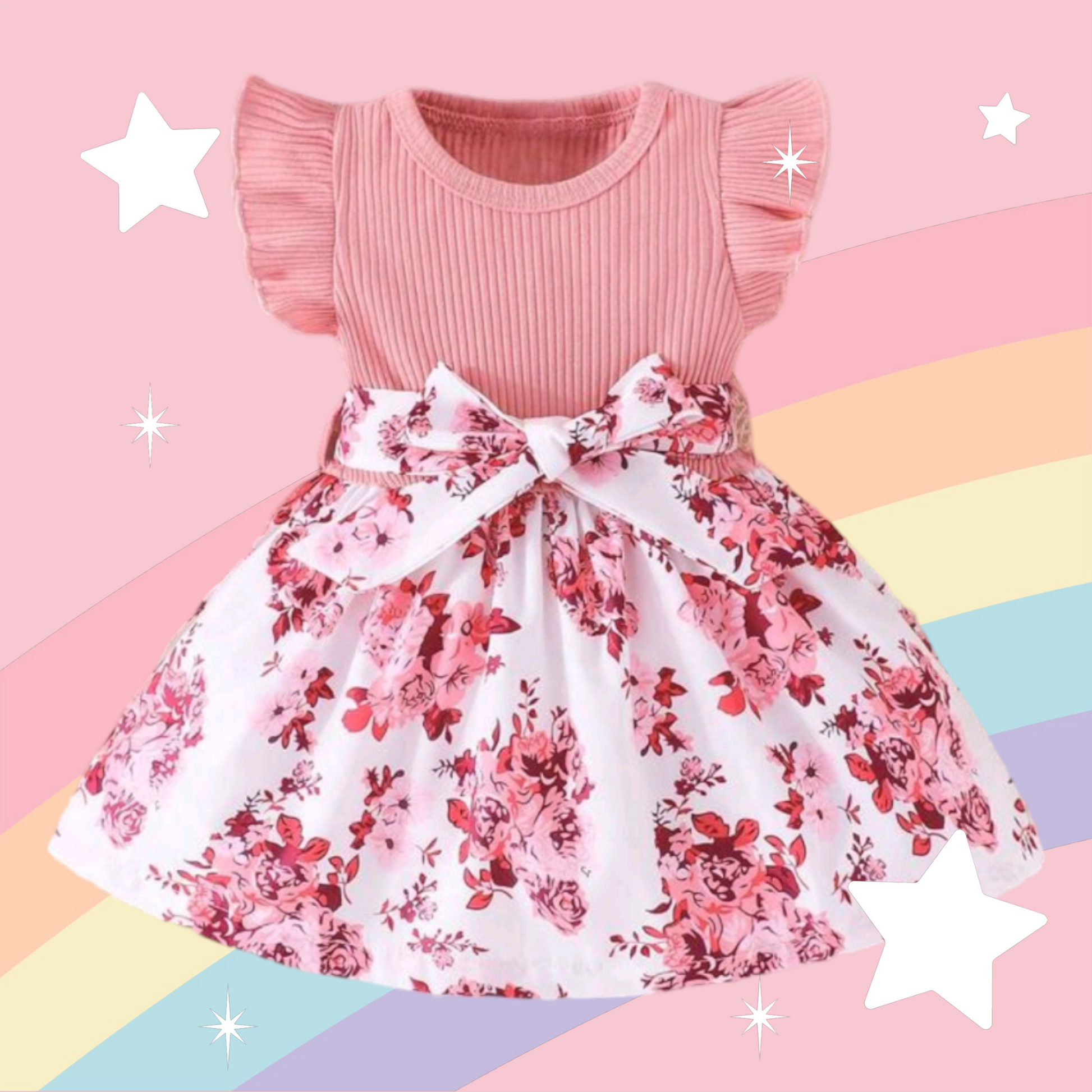 Pink Floral Dress with Ruffle Sleeves