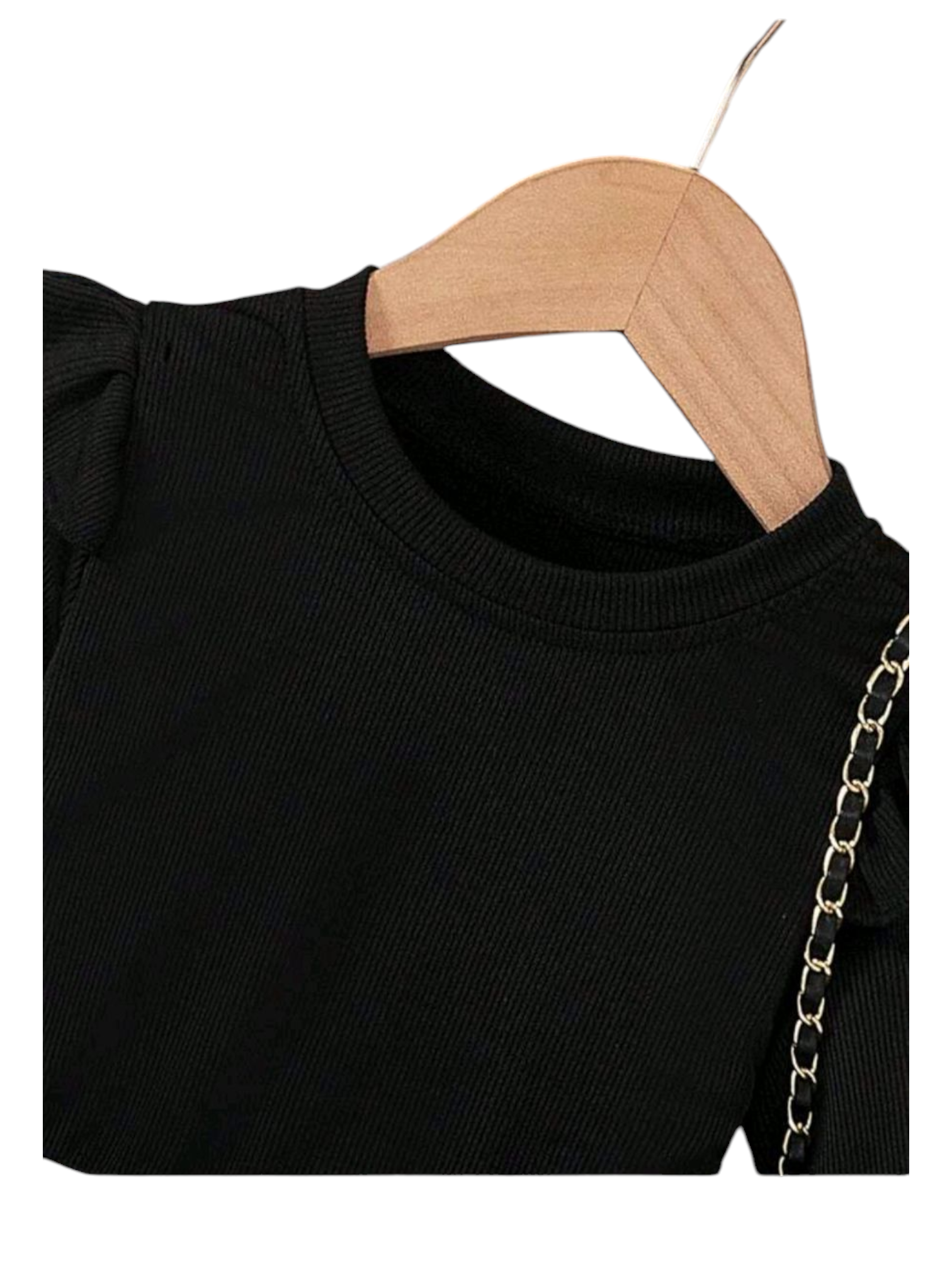 Black and Champagne Floral Long Sleeve Dress 1000346