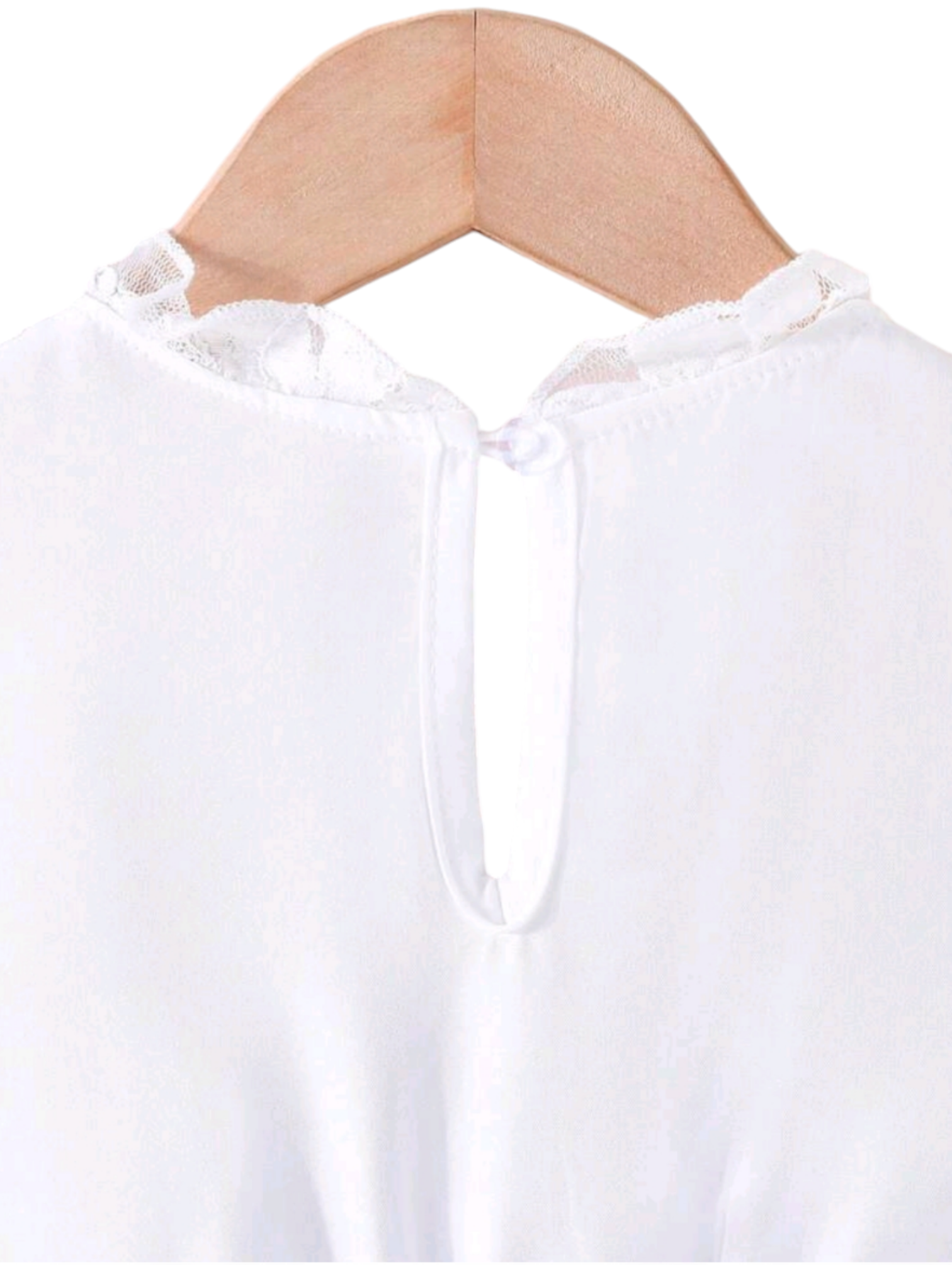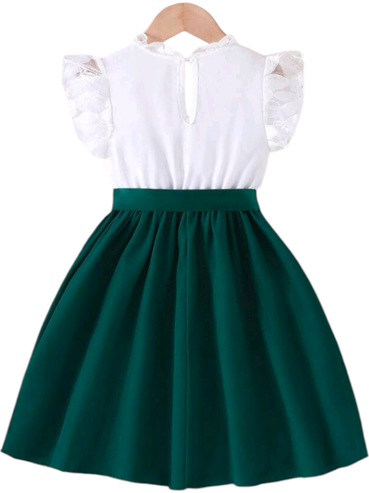 White Lace Ruffle Sleeve Dress with Green 1000359