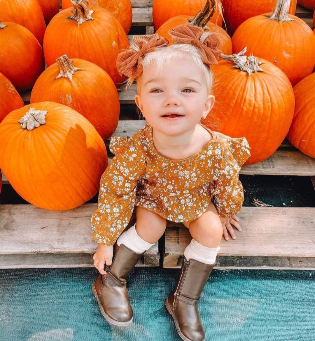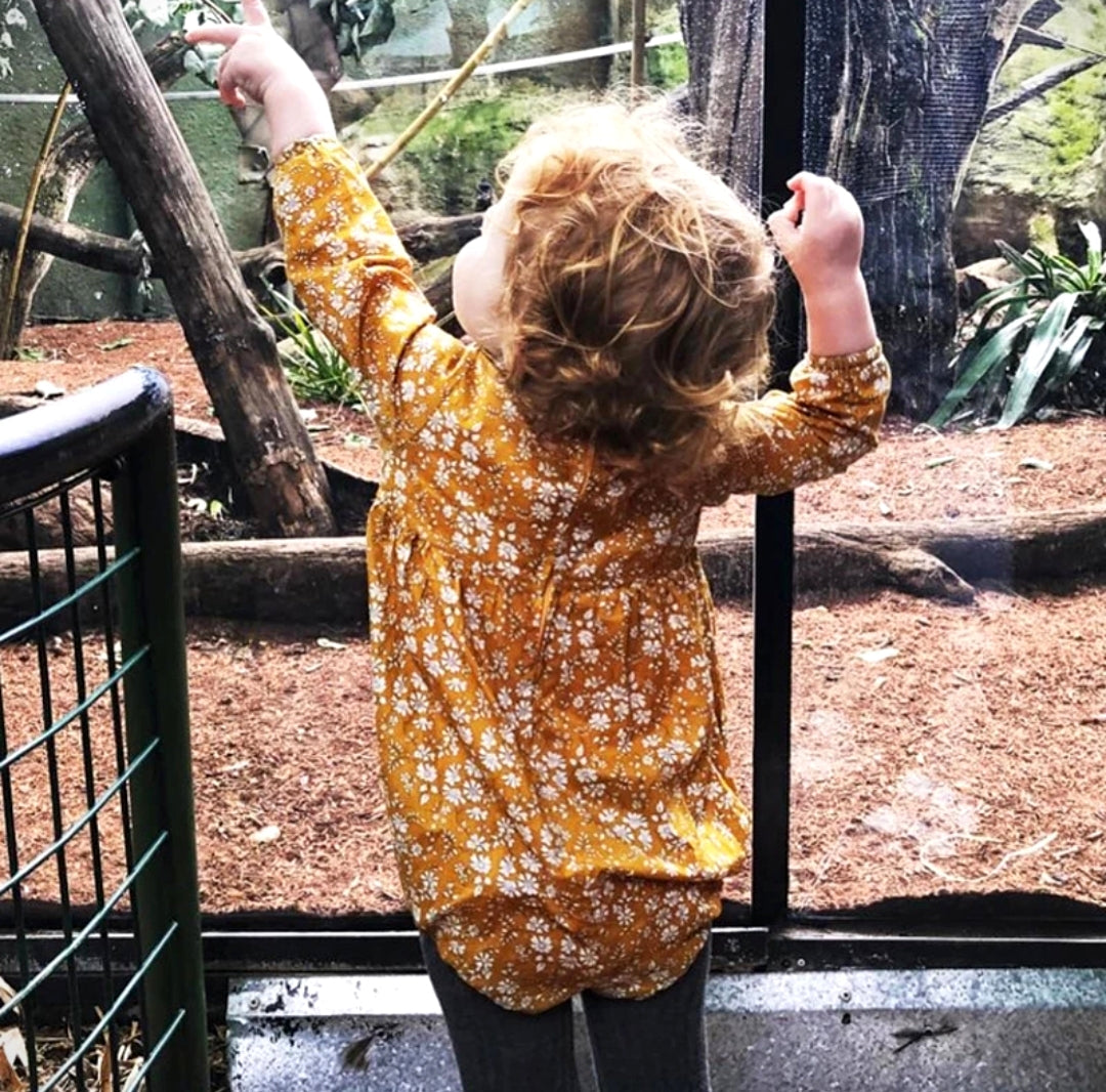 Mustard Floral Balloon Romper