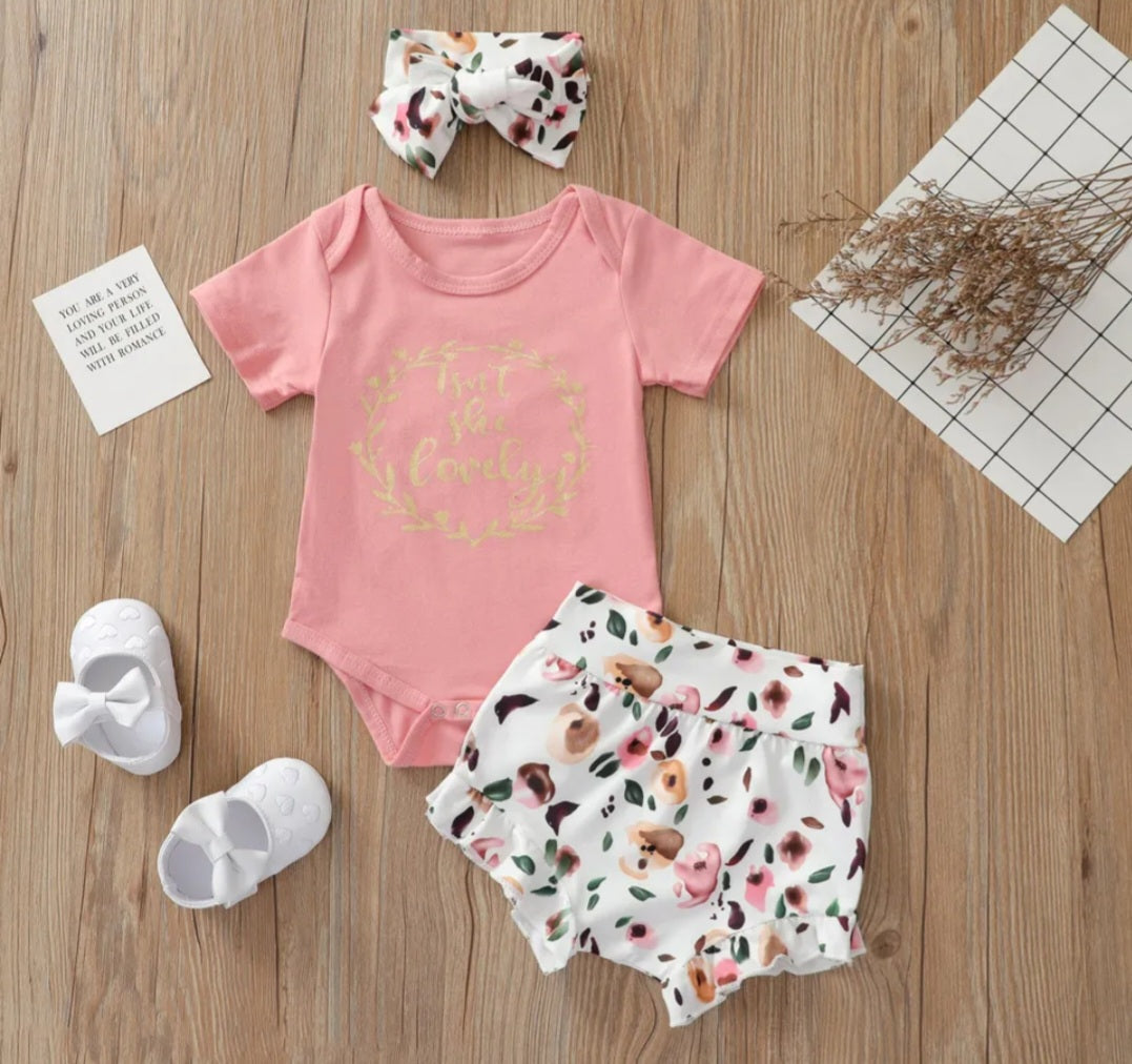 Isn't She Lovely Romper with Floral Bloomer and Headband