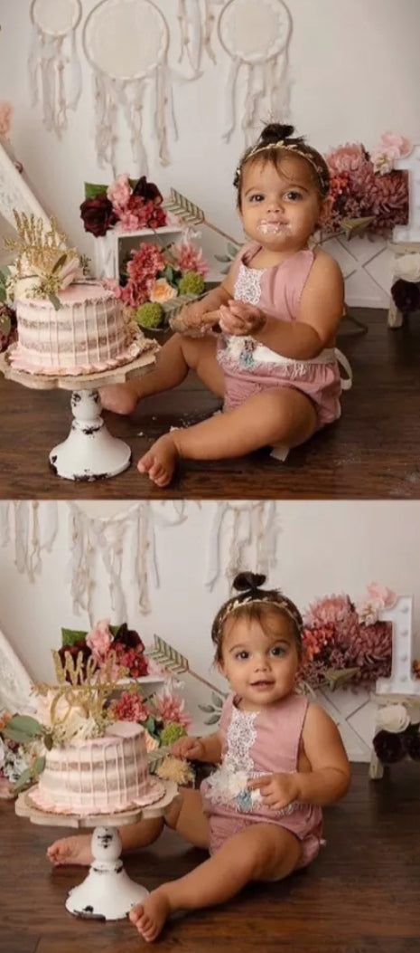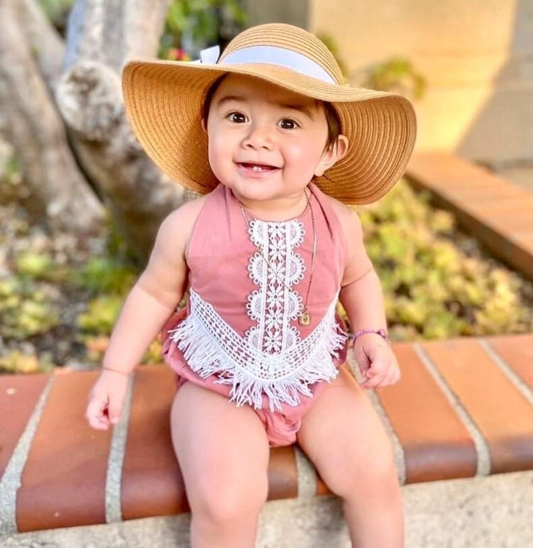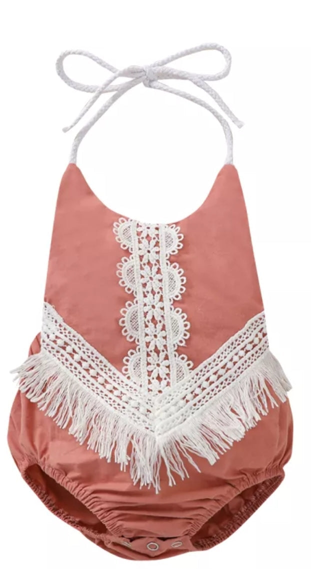 Dusty Pink Boho Romper with Lace