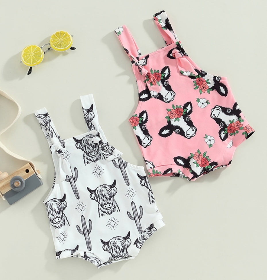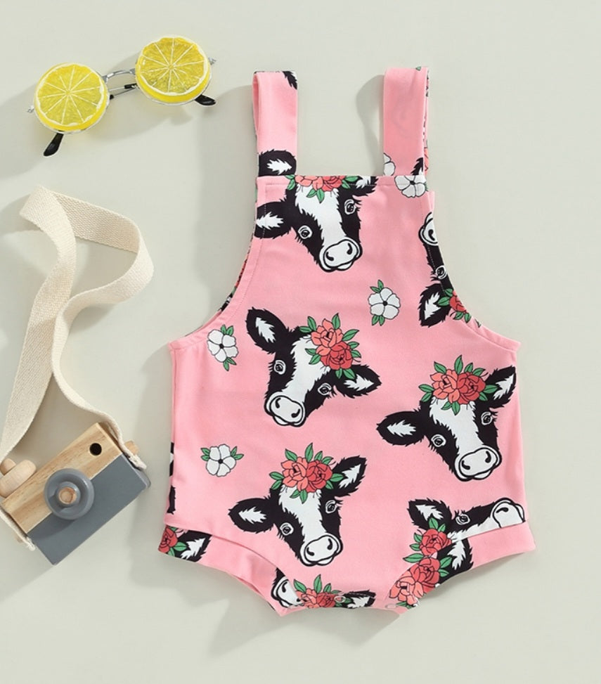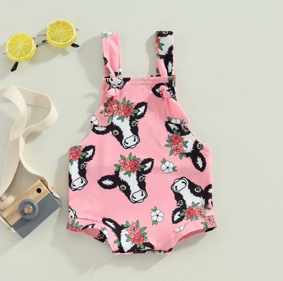 Pink Floral Cow Romper