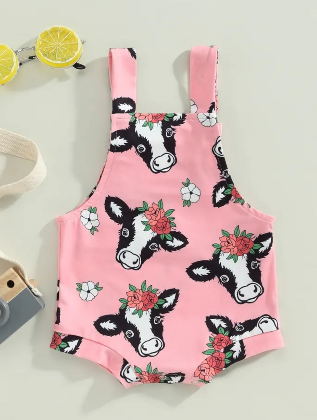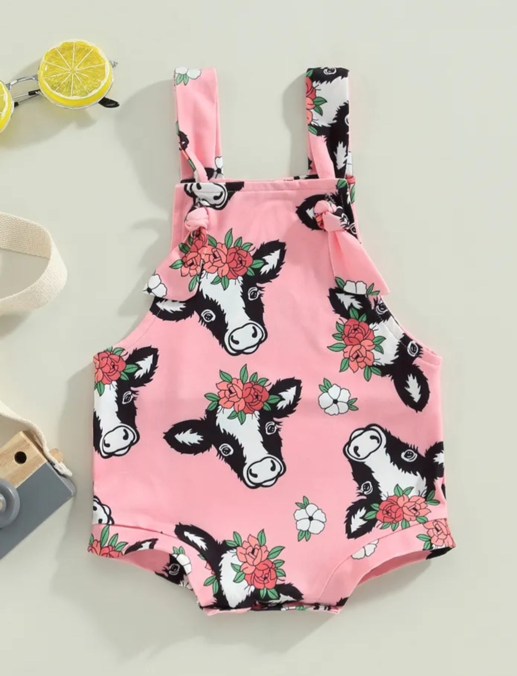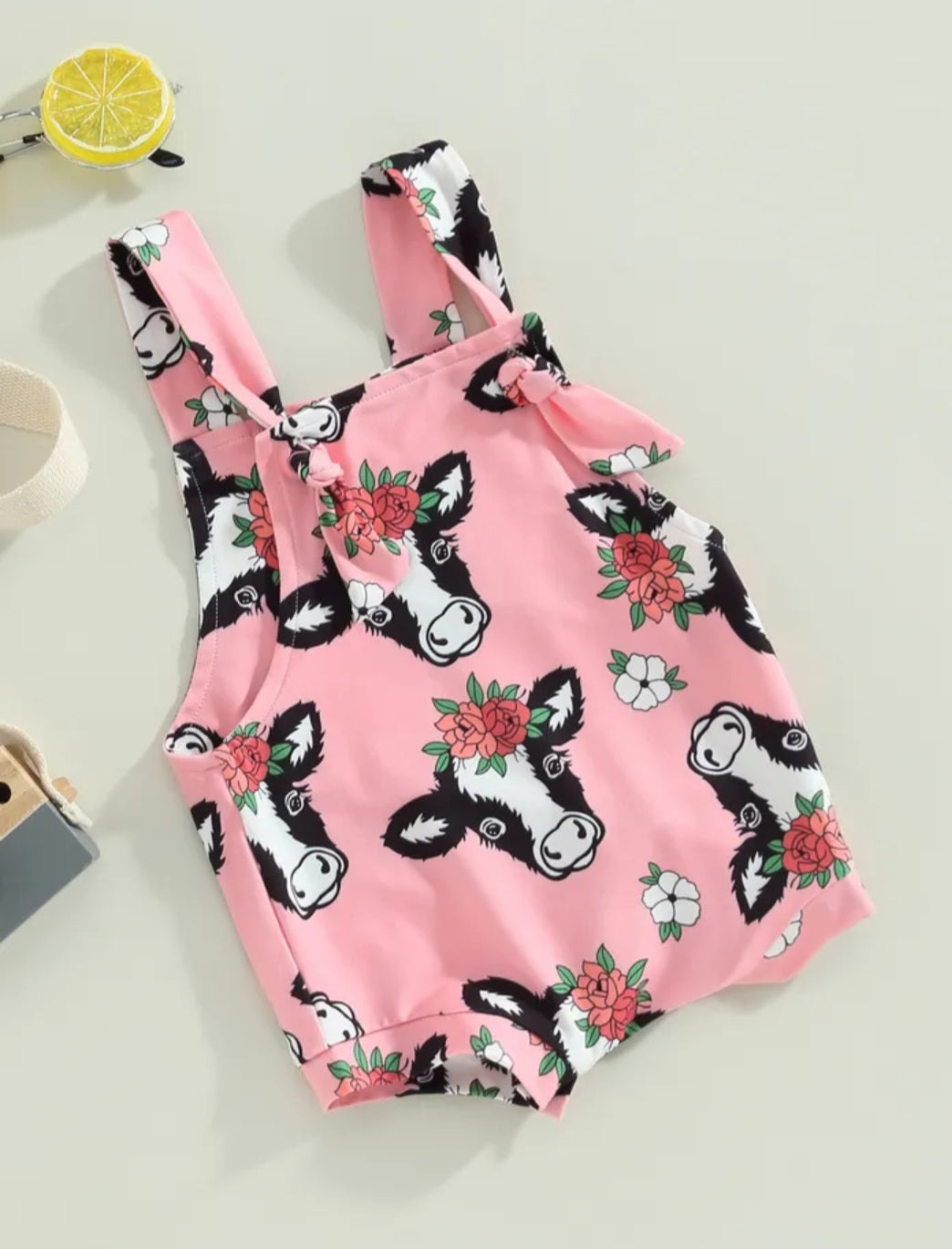 Pink Floral Cow Romper