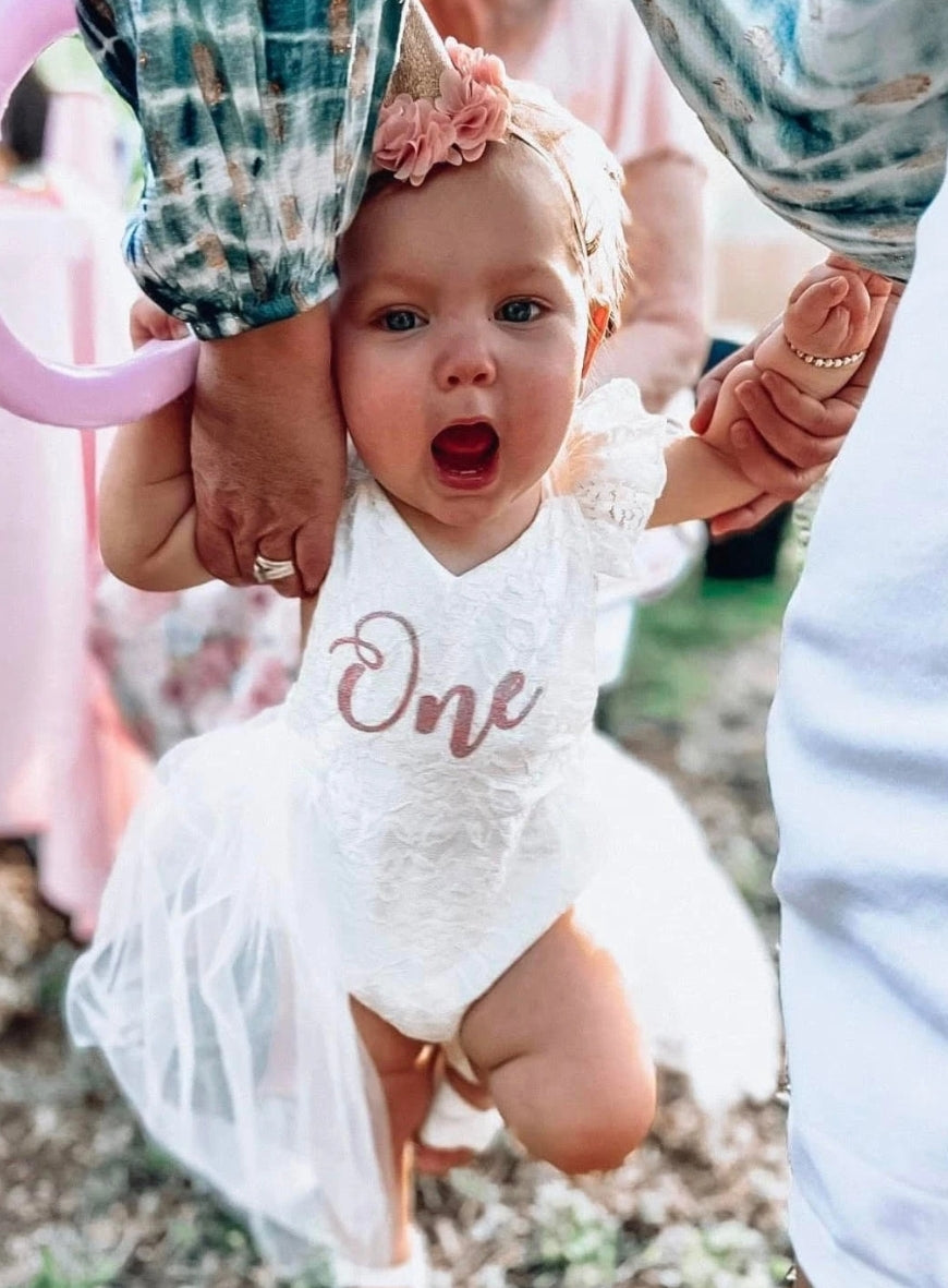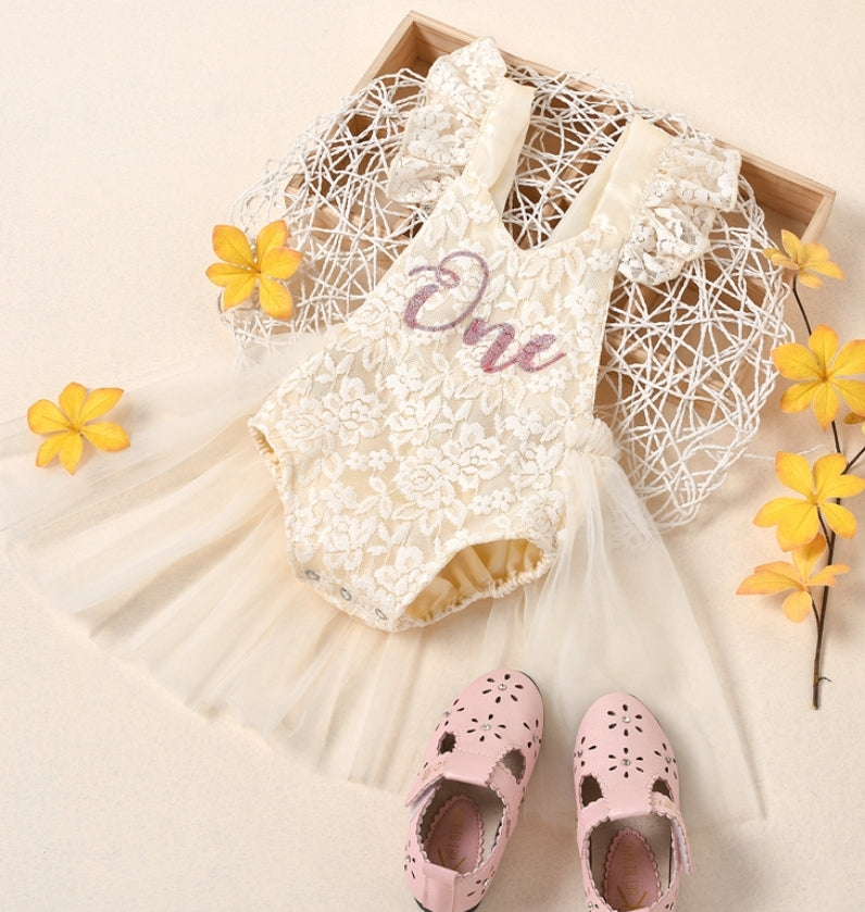 Birthday Outfit ONE Cream Lace Romper 1000630