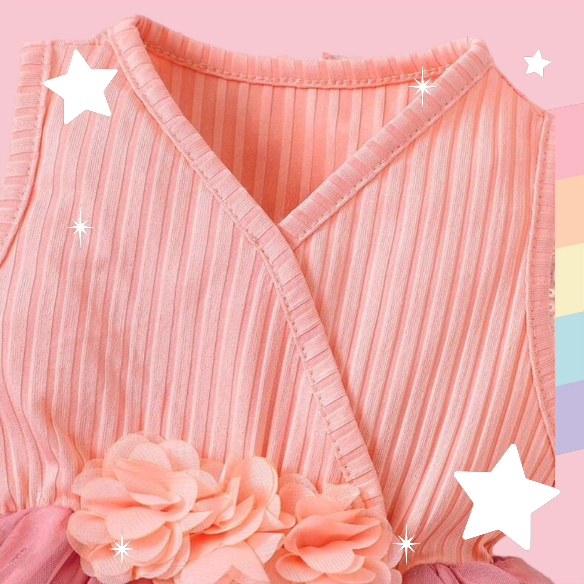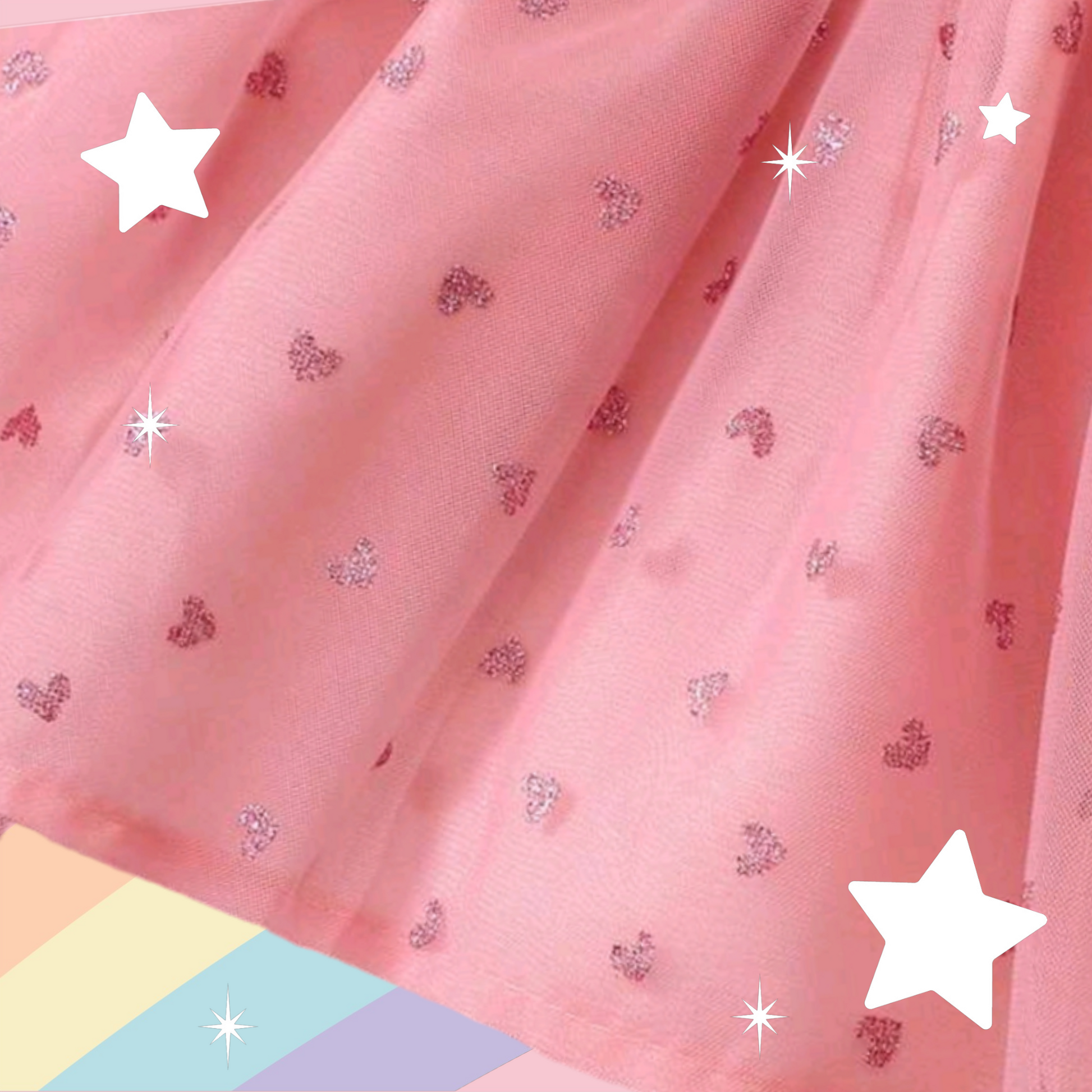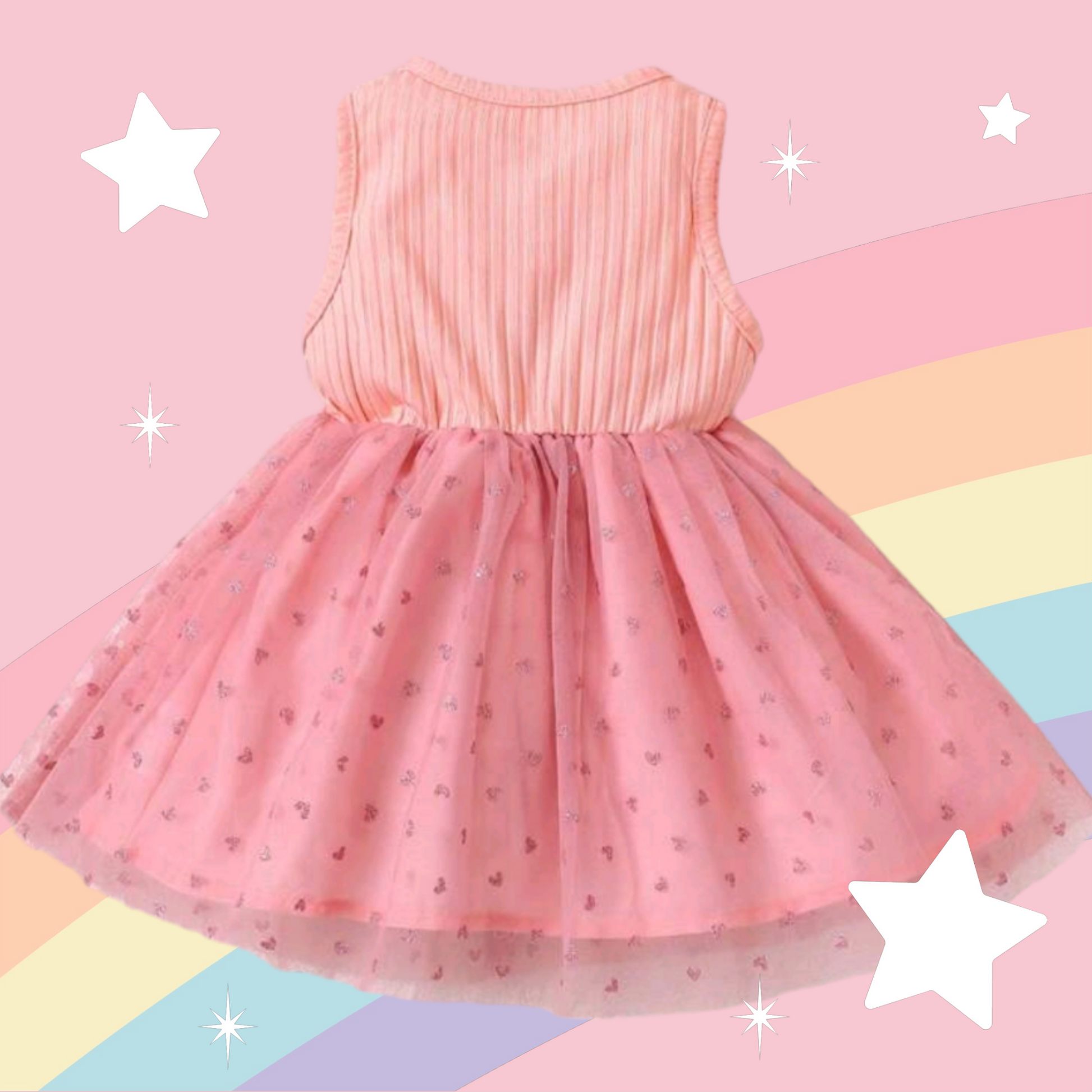 Pink Dress with Floral Detail and Heart Printed Overlay Mesh