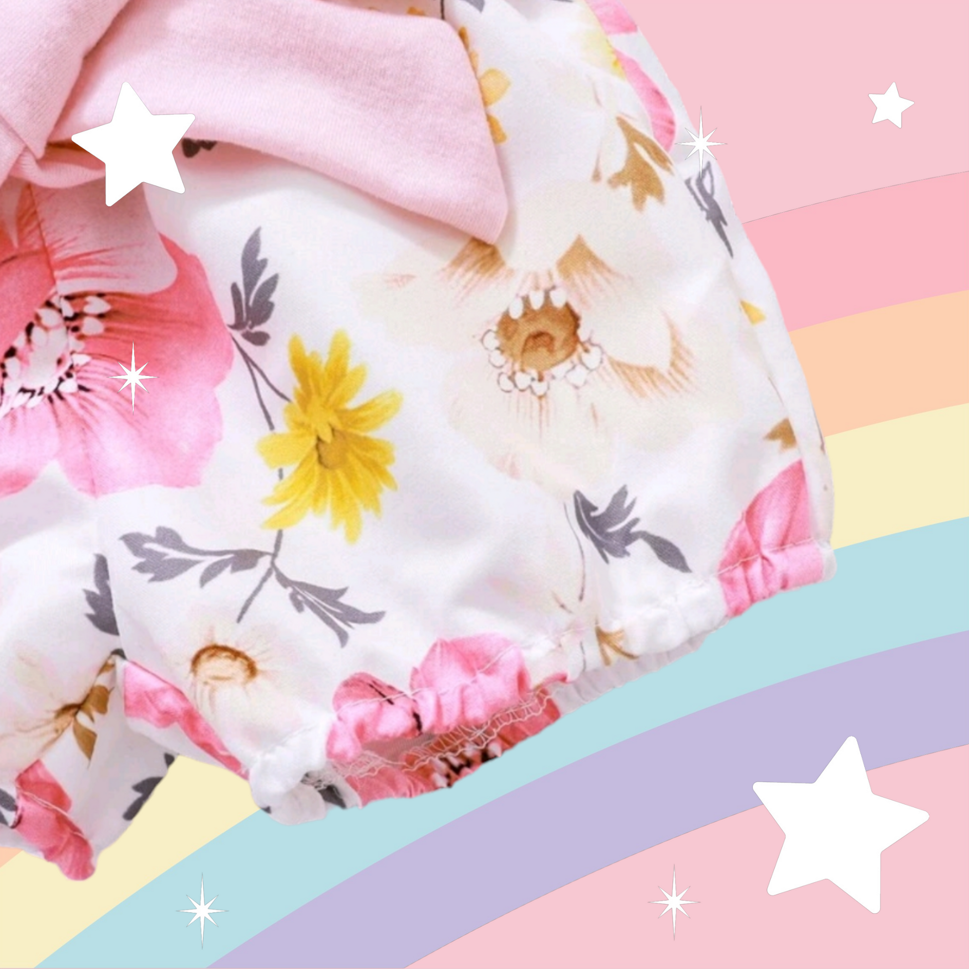 Daddy's Girl Mommy's World Pink Ruffle Romper with Floral Bloomer and Headband