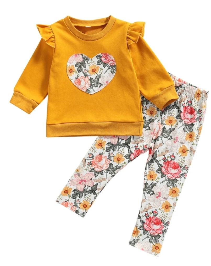 Mustard Floral Ruffle Sleeve Top with Floral Leggings