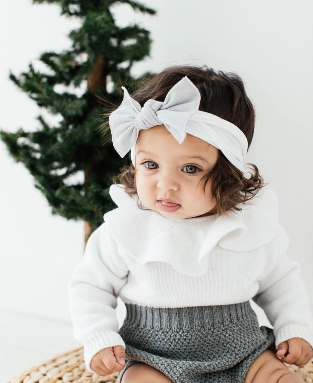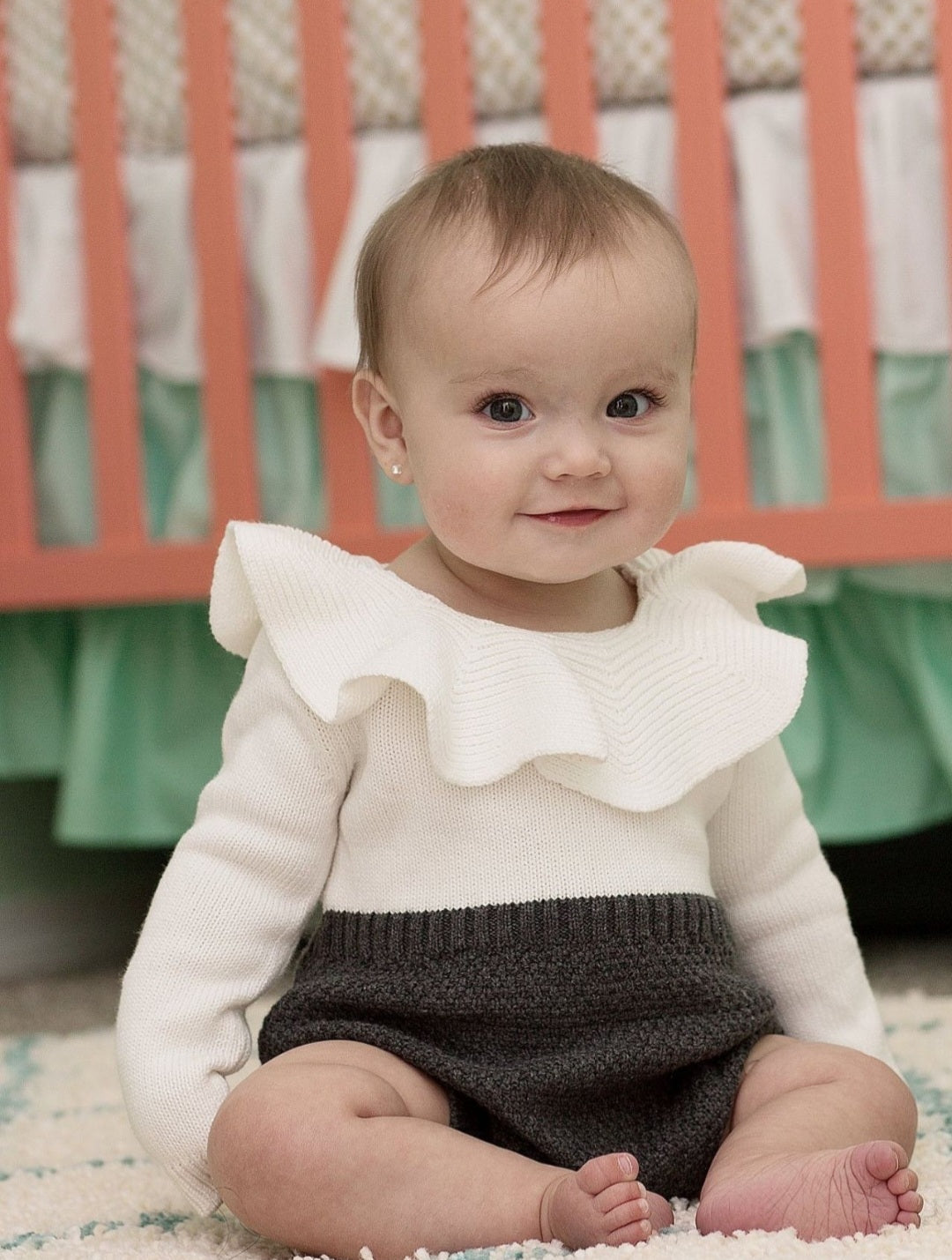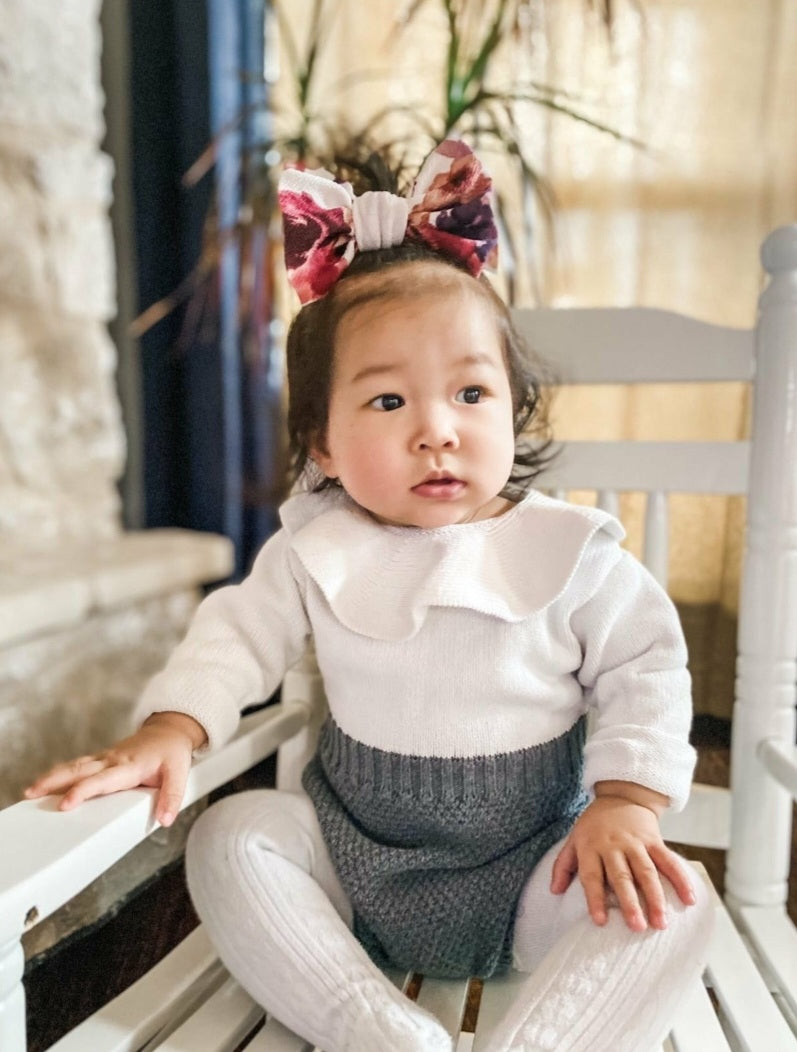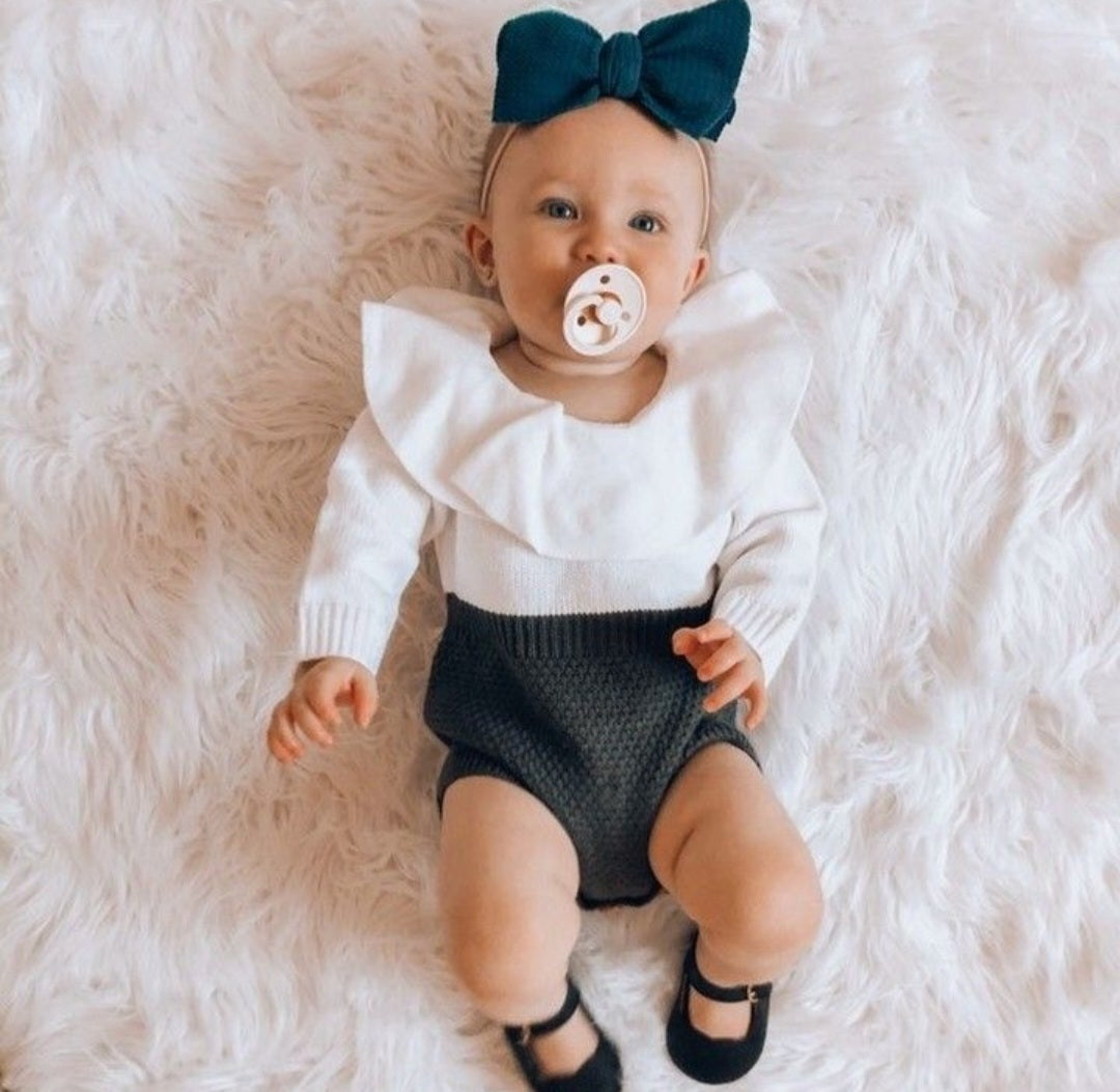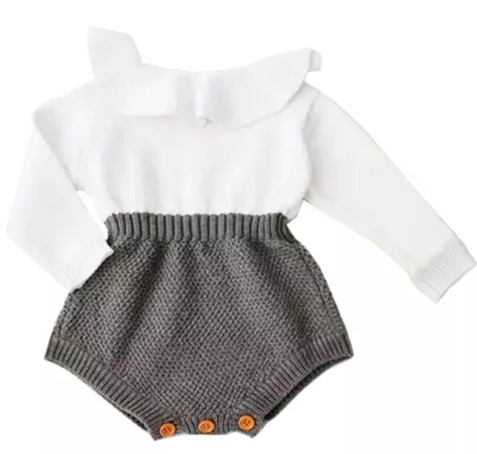 Luxury Two Tone Knitted Romper / Gray and White ( Gender Neutral)