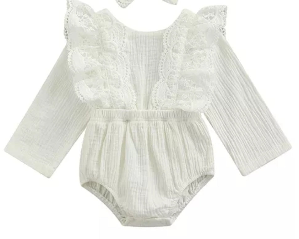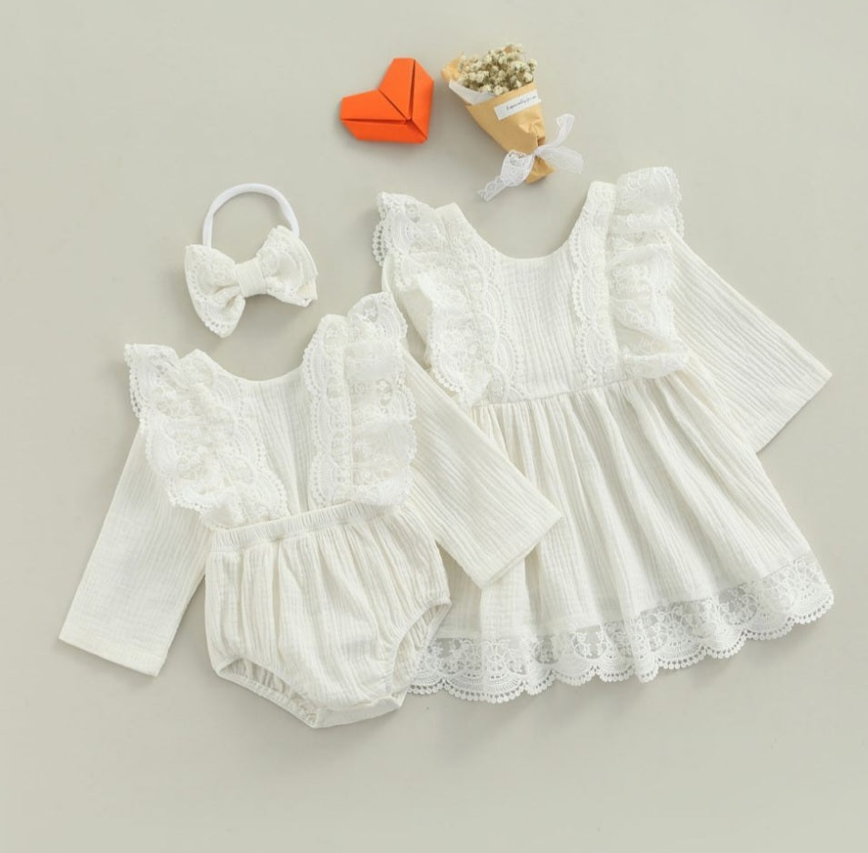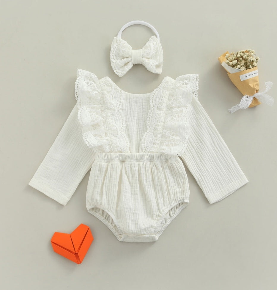 Long Sleeve Romper with Lace Ruffles (Part of Sibling Set Also Available in Dress up to 5Y)