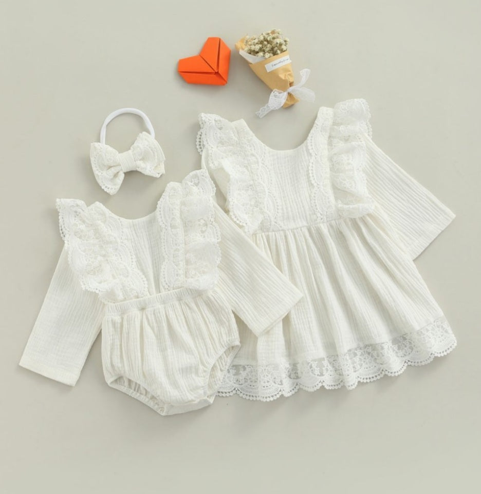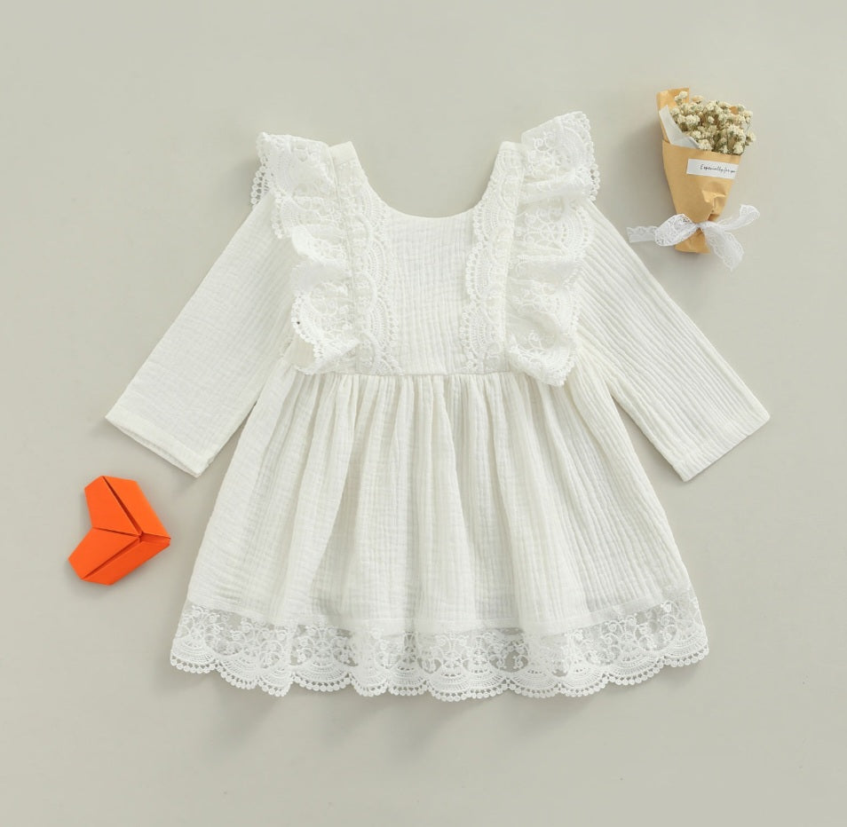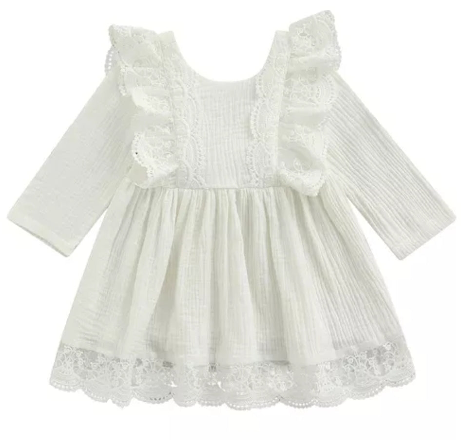 Long Sleeve Dress with Lace Ruffles (Part of Sibling Set Also Available in Romper 0-24M)