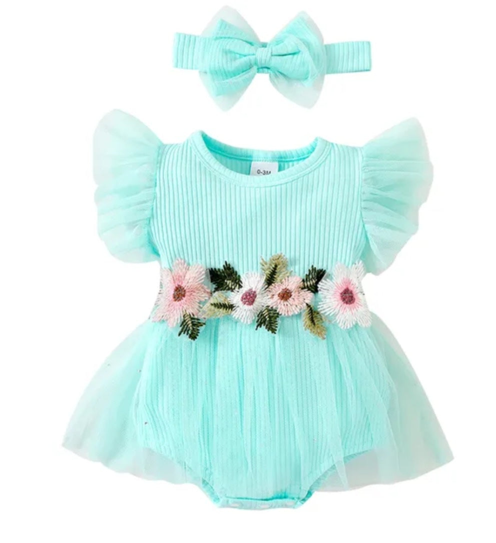 Sky Blue Ribbed Romper with Romantic Tulle Tutu and Headband
