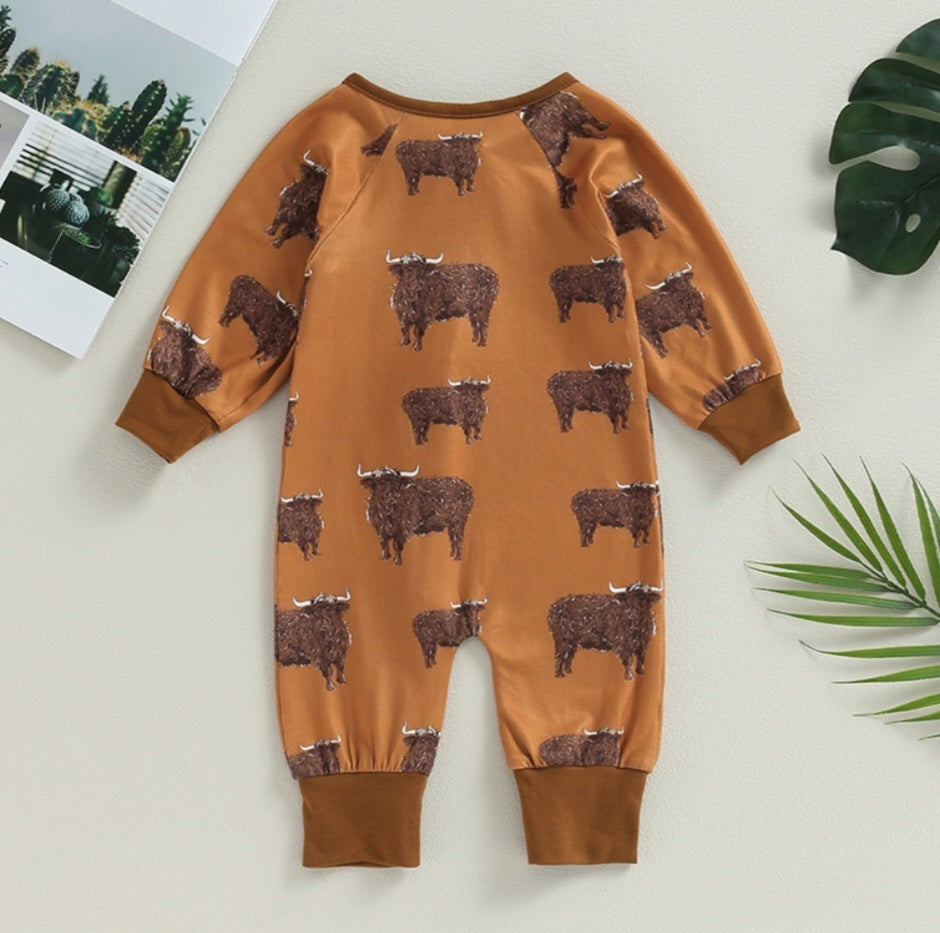 Tan Ranch Life Cow Romper with Side Zipper 2000352