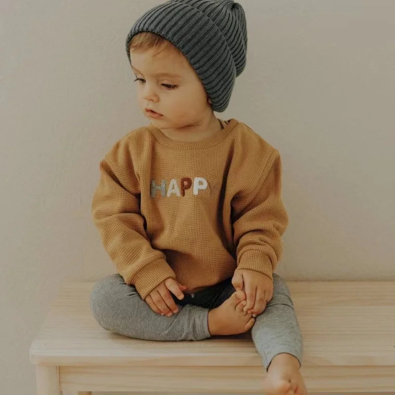 Mustard Happy Crewneck Gender Neutral Activewear Set