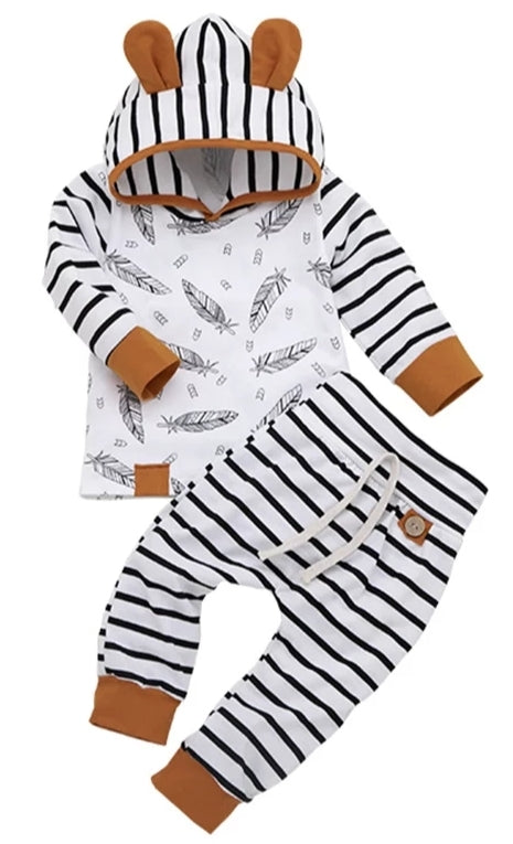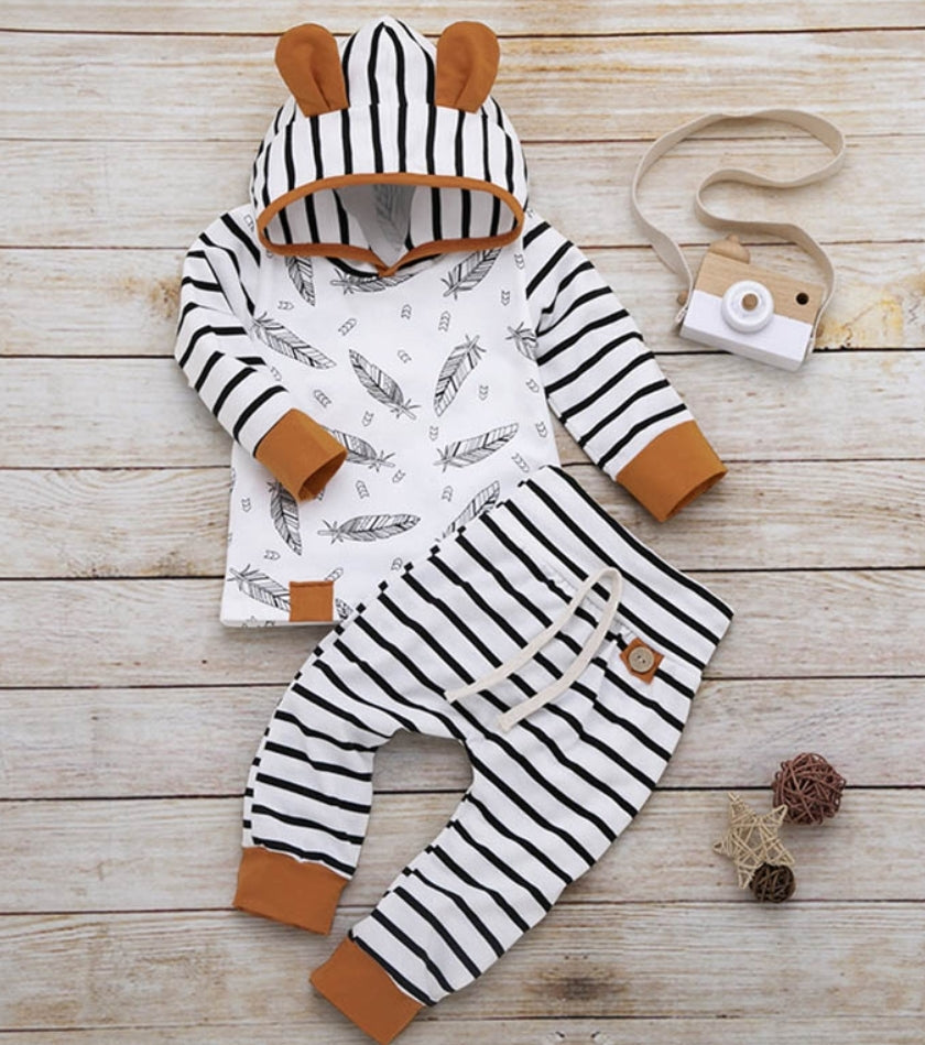 Striped Feather Hoodie and High Wasted Pants