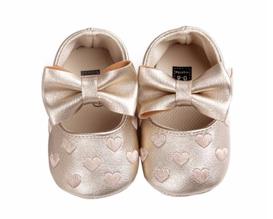 Gold Pumps with Hearts and Bow
