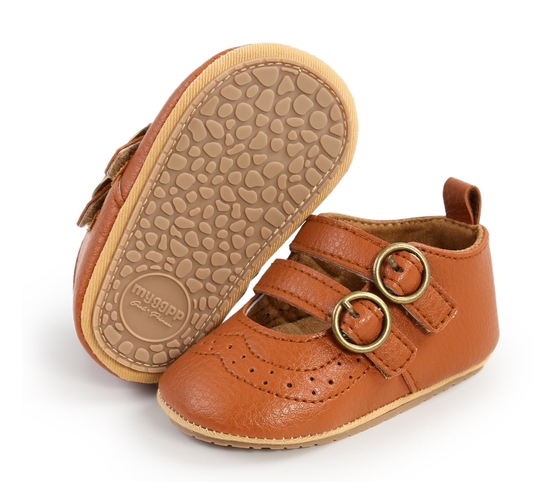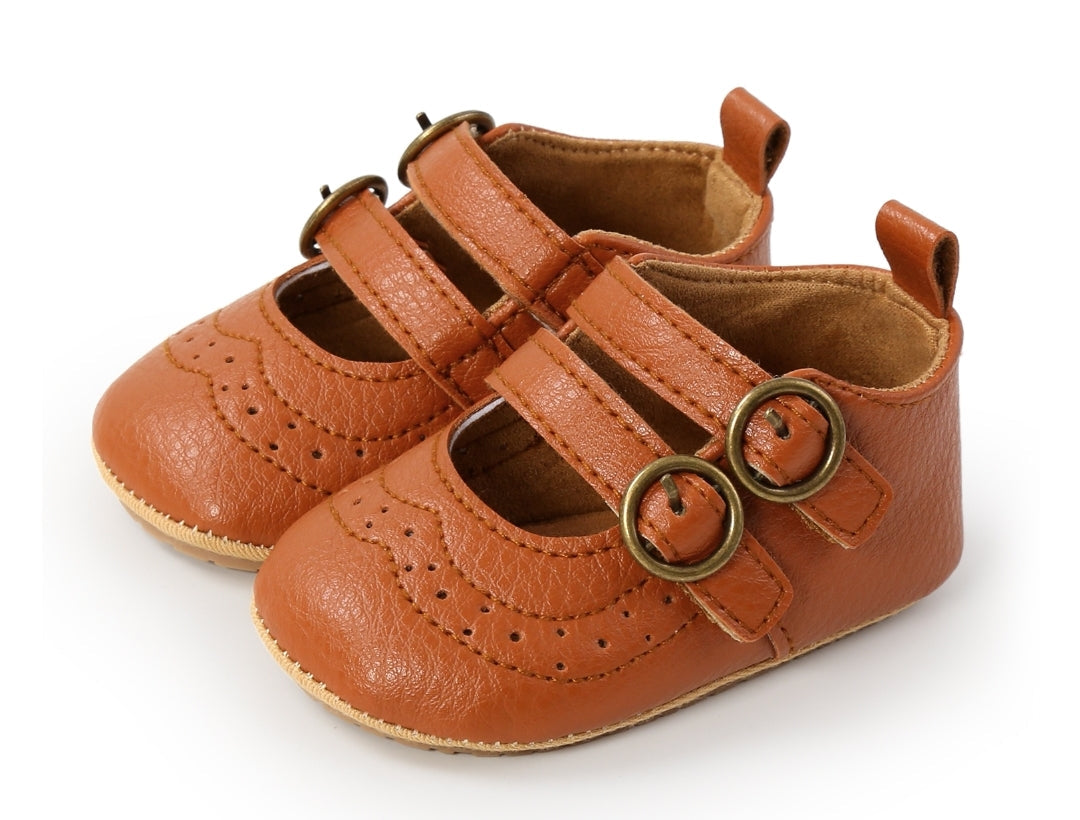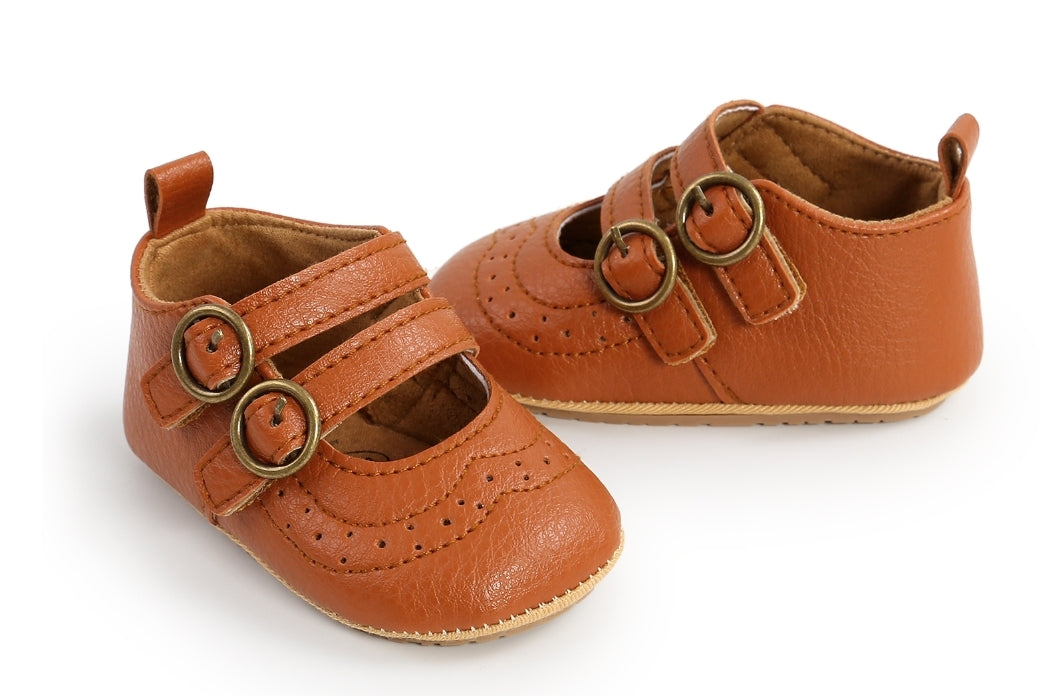Tan Leather Double Buckle Pumps