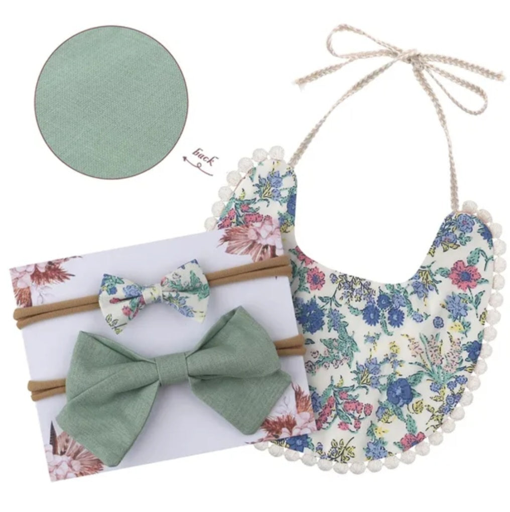Floral Mint Reversible Bib and Headbands