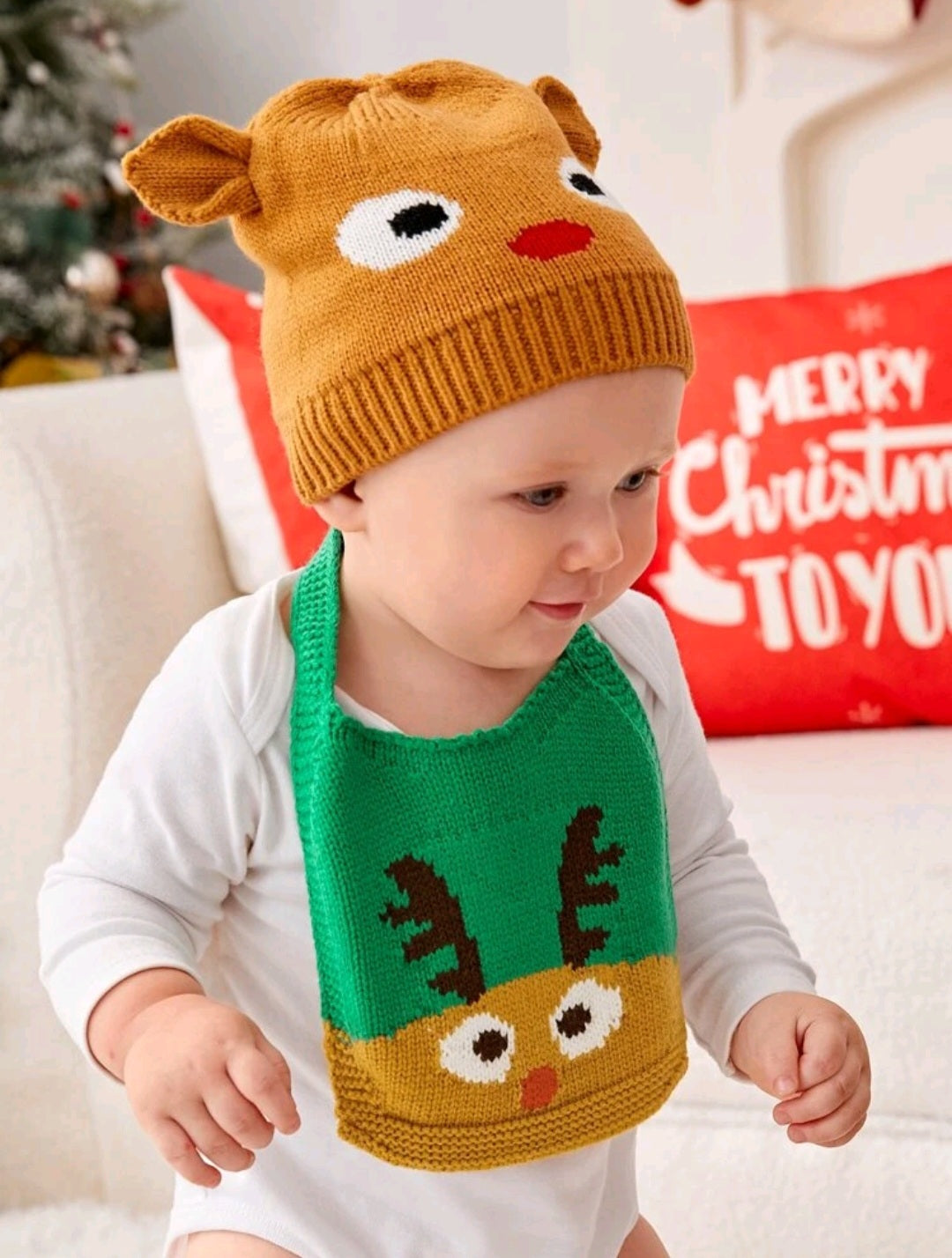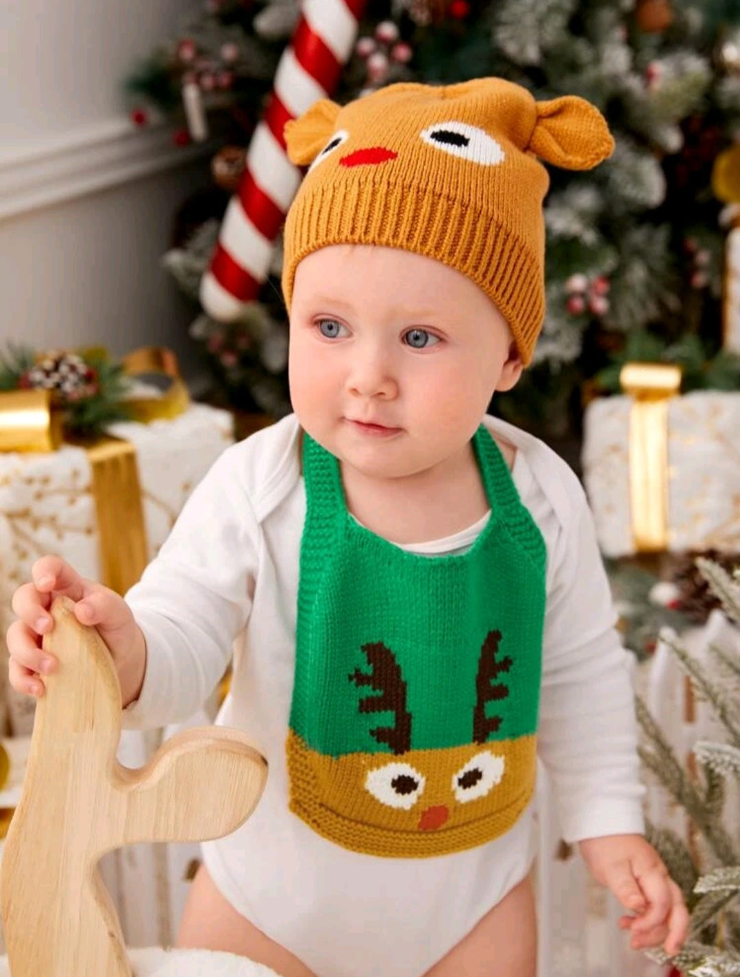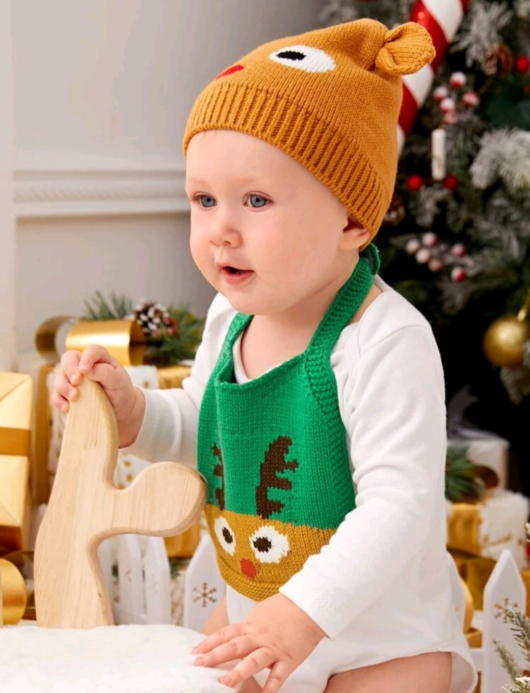 Knitted Raindeer Bib 1PSC