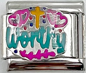 Worthy 9mm Charm. Enamel metal charm is soldered onto a stainless steel Italian charm. This charm fits any 9mm Italian charm bracelet